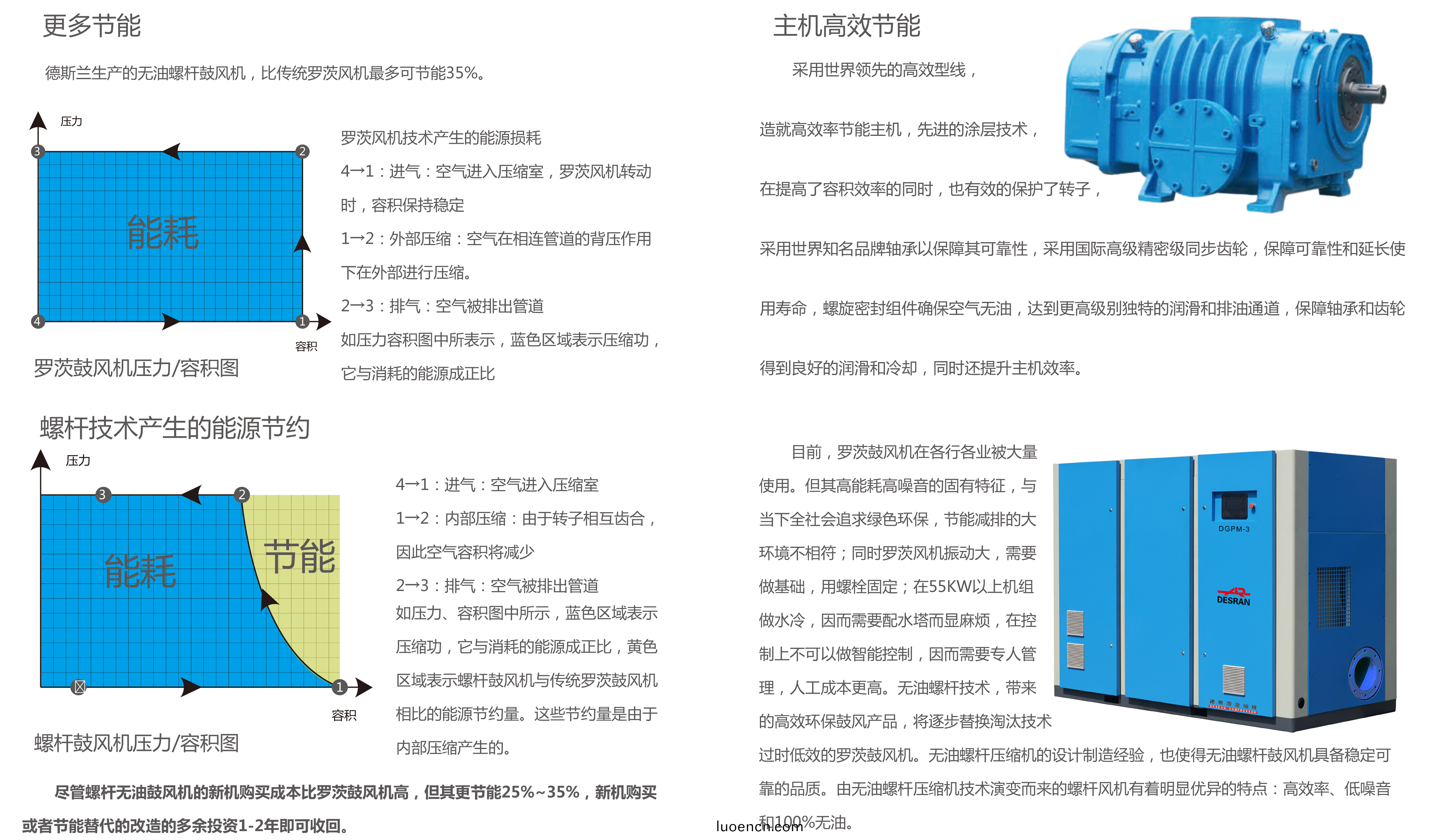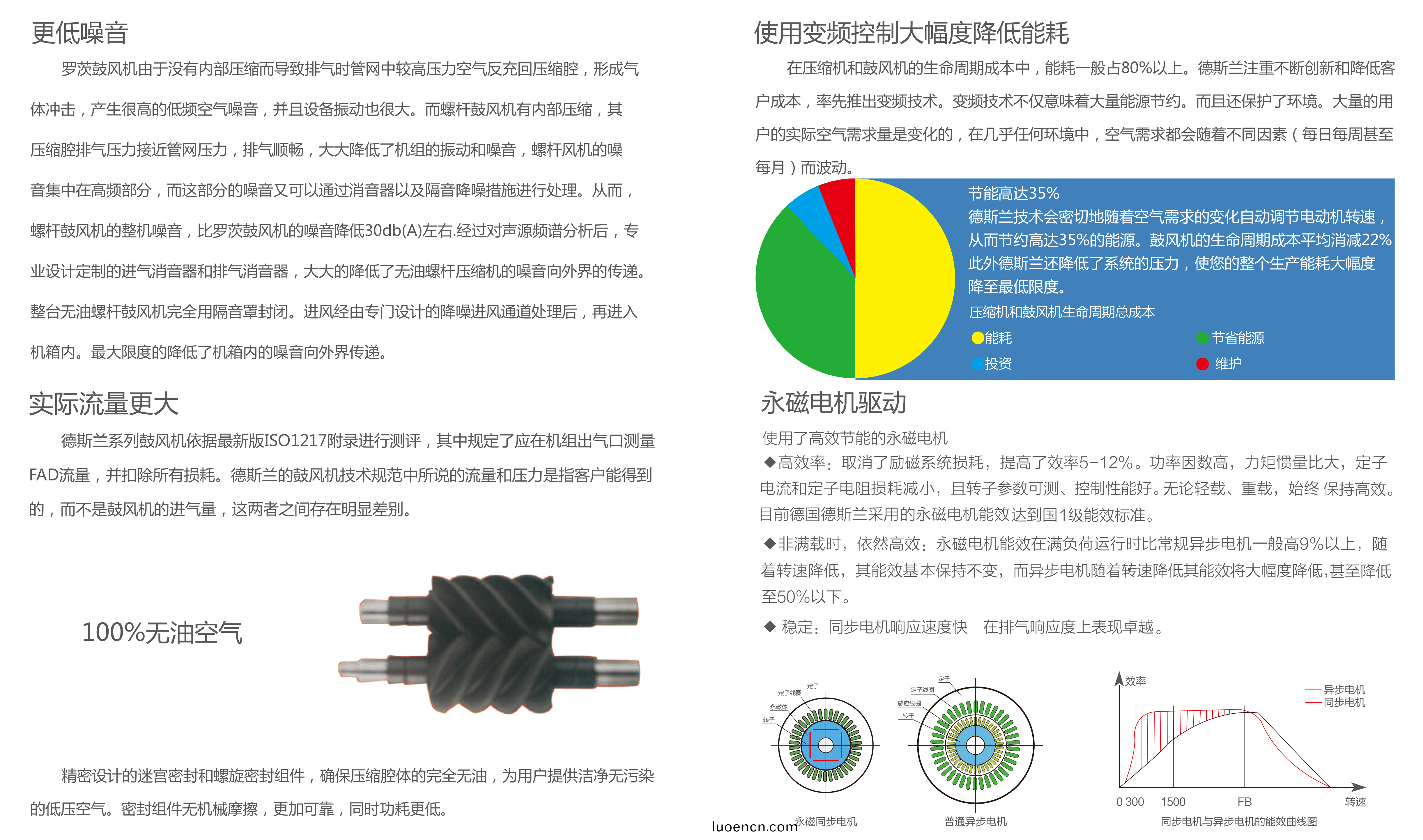 ●氣(qi)力輸送-稀(xi)相(xiang)-水(shui)泥廠(chang)粉(fen)體(ti)輸(shu)送-石(shi)油化工(gong)中(zhong)粉(fen)體(ti)輸(shu)送(song)更(geng)低(di)的(de)能源(yuan)成(cheng)本(ben)(在皷(gu)風機(ji)生命週期成(cheng)本中可達80%),創新式螺桿(gan)皷(gu)風(feng)機技術使停(ting)機(ji)維(wei)保(bao)時(shi)間更低。